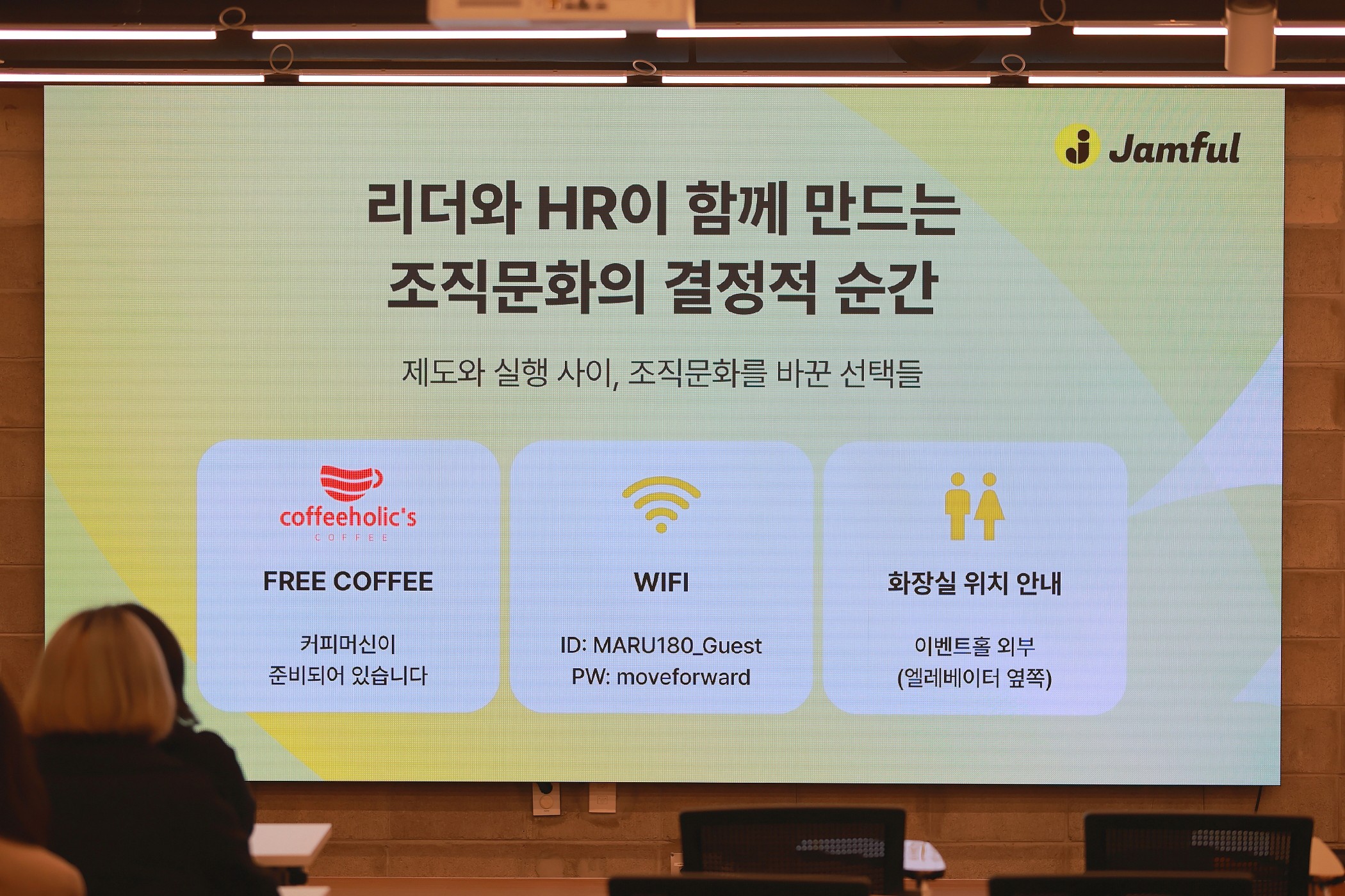 지난 3월 12일, 역삼동 마루 180 이벤트홀은 행사 시작 전부터 빈자리를 찾기 힘들 정도로 뜨거운 열기로 가득 찼는데요! 잼플에서 주최한 <리더와 HR이 함께 만드는 조직문화의 결정적 순간> 세미나 때문이었죠:)