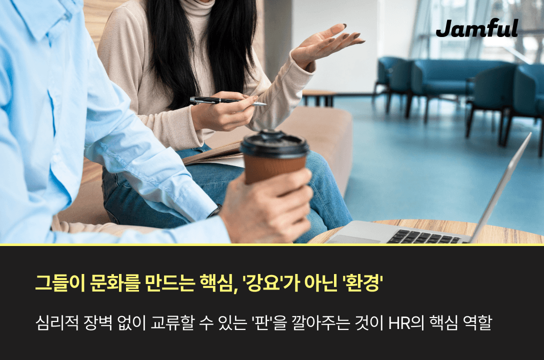 구성원들이 업무 외적인 부분에서도 자연스럽게 어울리고, 심리적 장벽 없이 교류할 수 있는 '판'을 깔아주는 것이 HR의 진짜 역할이자 핵심이죠.