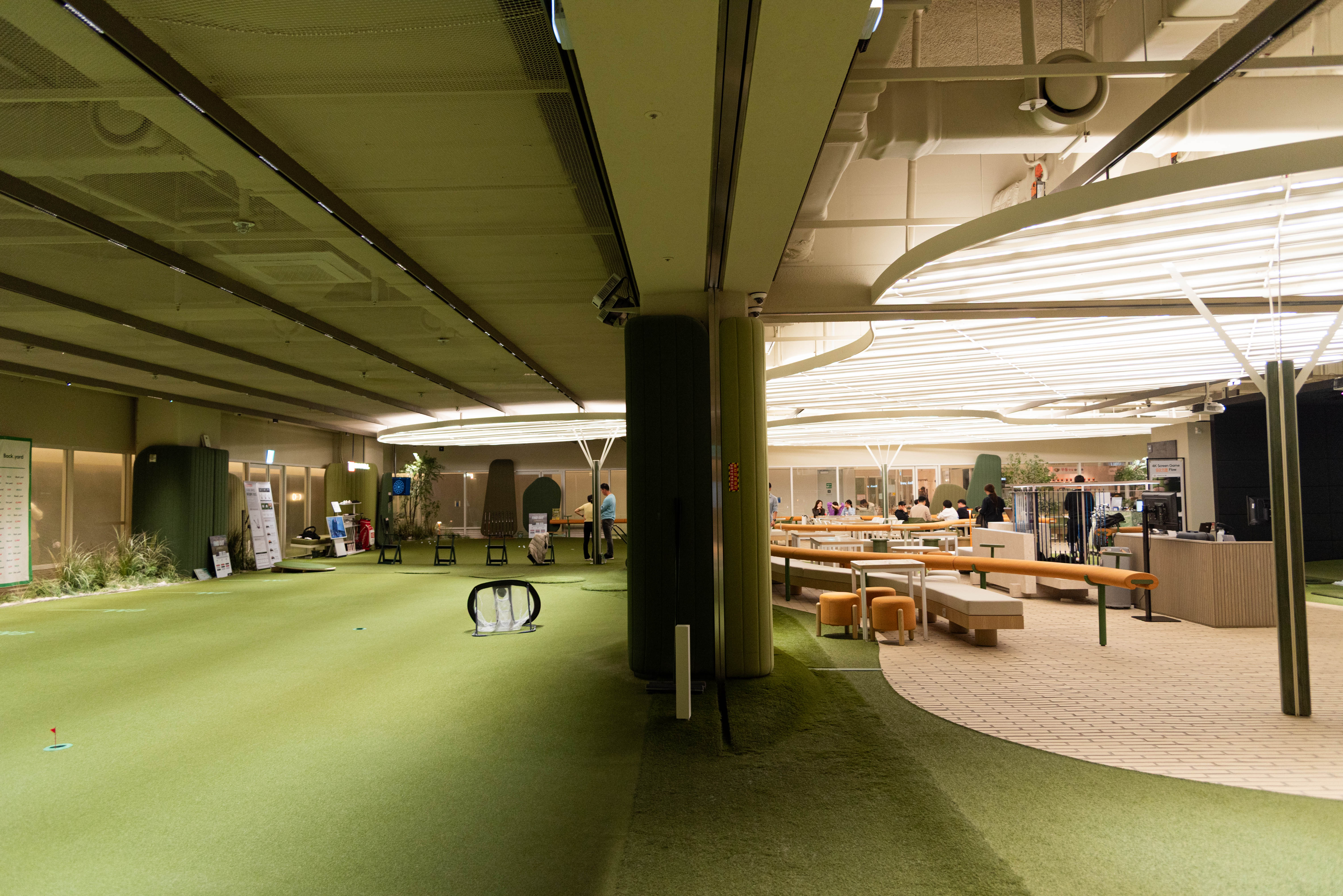 판교점에서는 단순한 실내 연습장을 넘어, 감각적인 골프 커뮤니티 공간인 ‘백야드(Backyard)’에서 수업이 진행됩니다. 감성적인 인테리어와 넉넉한 공간 구성으로, 마치 프라이빗 골프 라운지에 온 듯한 경험을 누릴 수 있어요.